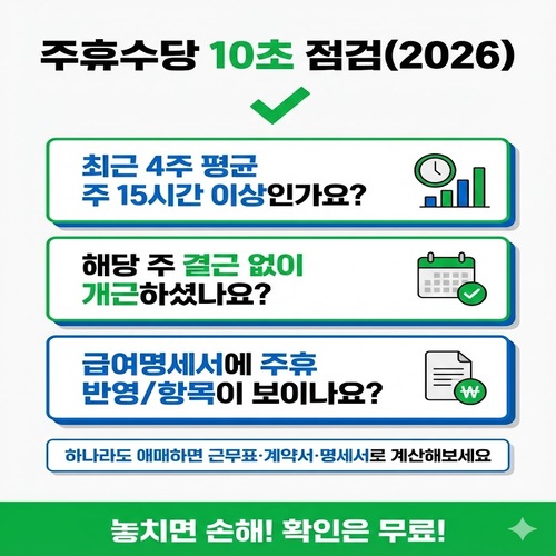 5) 주휴수당 10초 점검 체크리스트(지금 바로 확인용)