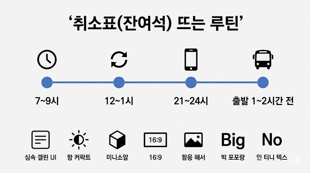 취소표는 한 번에 우르르 풀리기보다, 계속 띄엄띄엄 생기는 느낌이야. 그래서 “언제 풀리냐”보다 “어떤 루틴으로 보냐”가 더 중요하다.