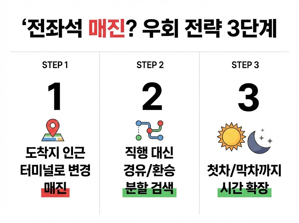 댓글로 출발지/도착지/원하는 시간대 남겨주면, 내가 “우회 노선 + 취소표 노리는 루틴”까지 맞춤으로 정리해줄게.